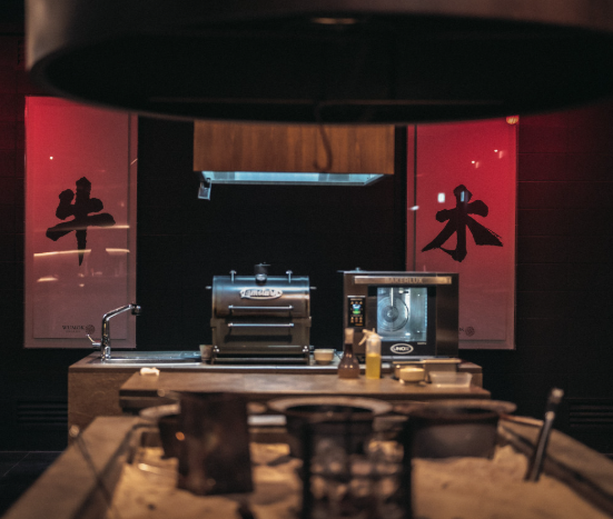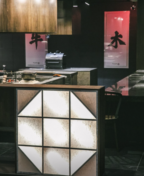 레스토랑은 18석의 카운터석과 2개의 개인 룸을 갖추고 있으며, 카운터석에서 요리 과정을 가까이에서 즐길 수 있습니다.