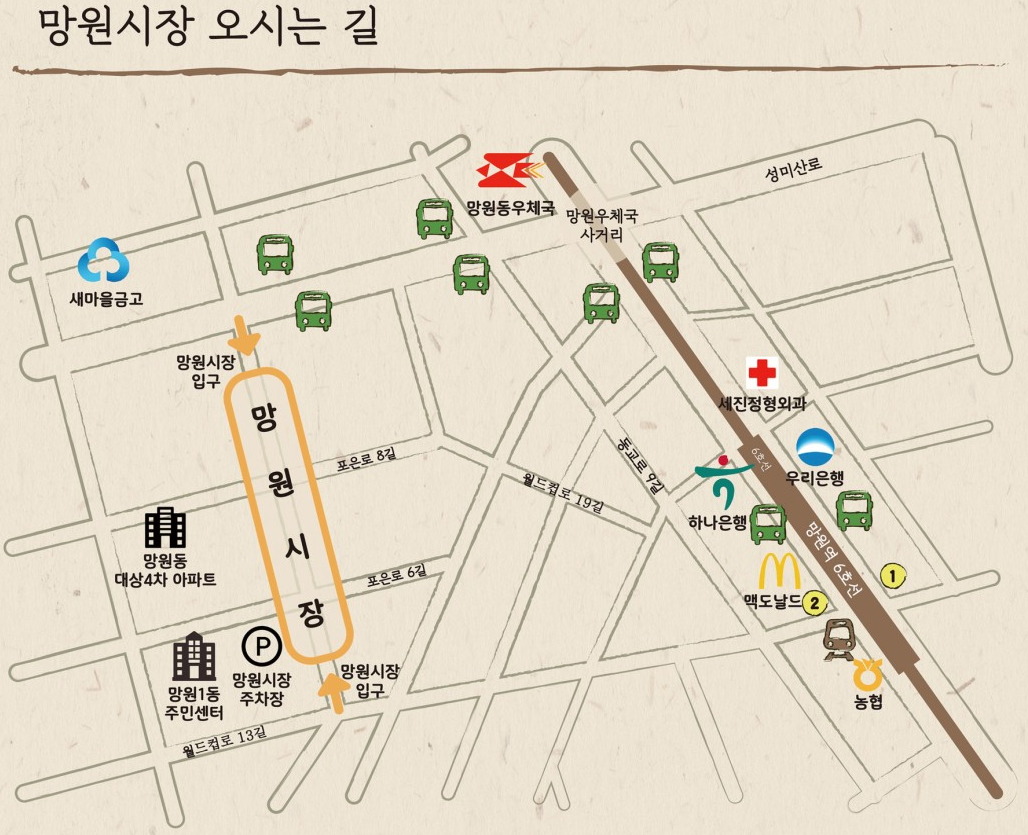 • 시장 주소 : 서울특별시 마포구 포은로 6길 27 1층 (망원역 2번 출구)