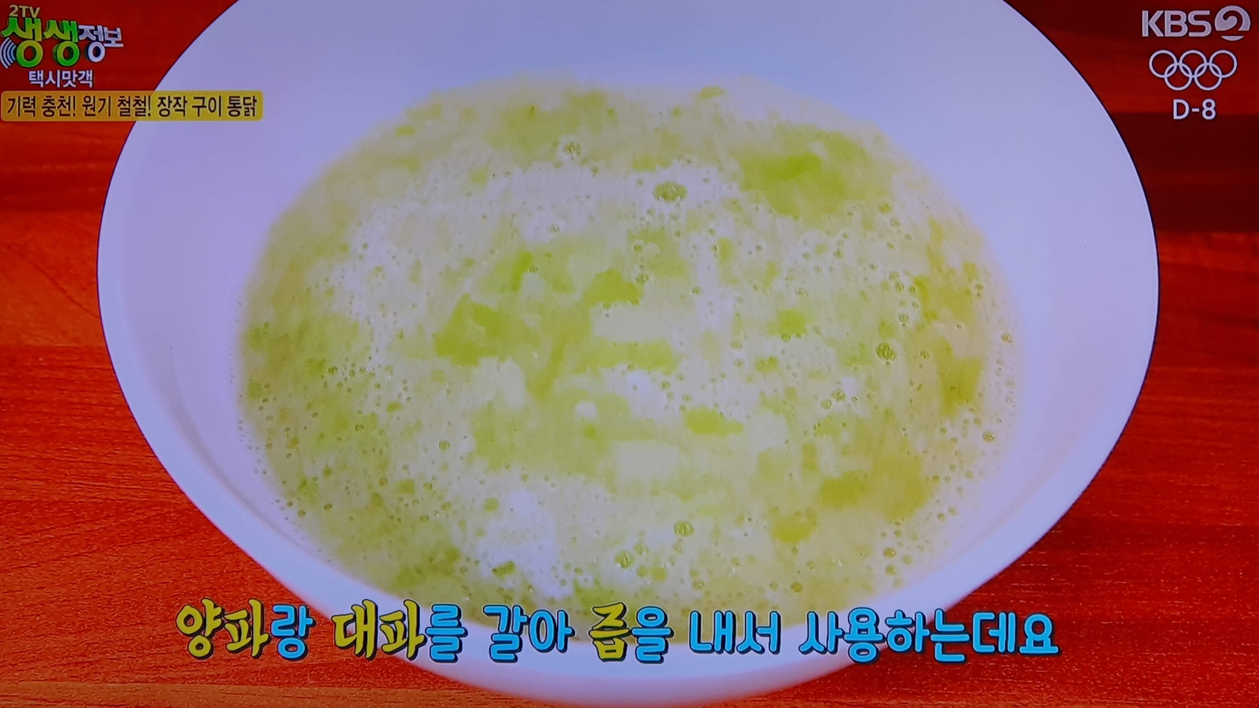 - 대파와 양파를 간 즙을 이용하여 닭고기 염지하여 김 칠 맛과 육질의 부드러움 업