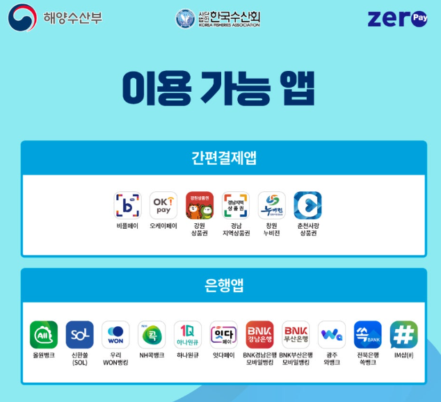 - 제로페이 사용 가능 앱 : 수산대전상품권 구매가능 앱