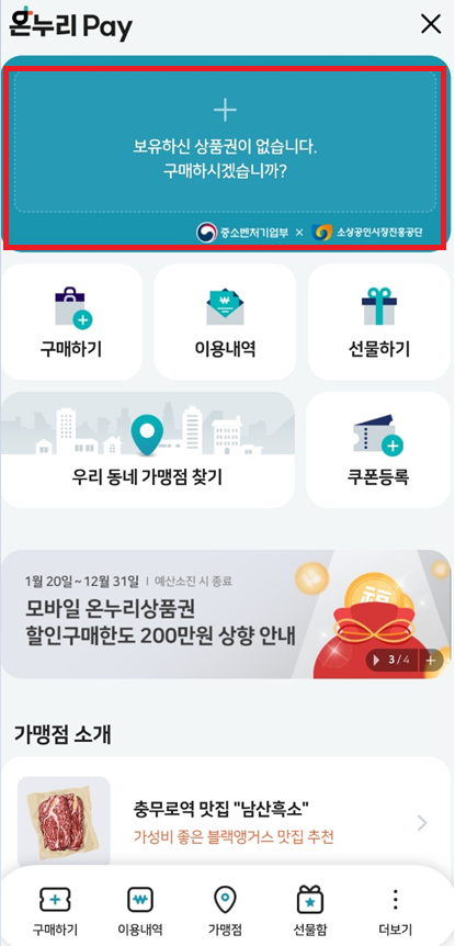 - 본인인증 후 온누리상품권환급받기