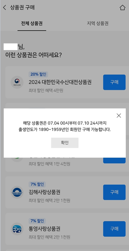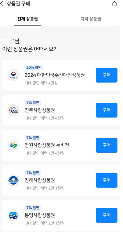 - 상품권 구매하기 ▶ 2024 대한민국수산대전상품권 구매하기